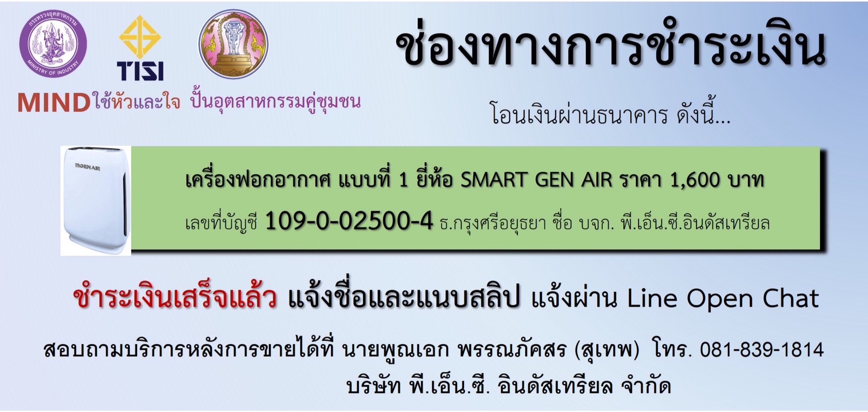 หรือ Line Open Chat “เครื่องฟอกอากาศราคาโรงงาน สำหรับชาวเชียงใหม่”