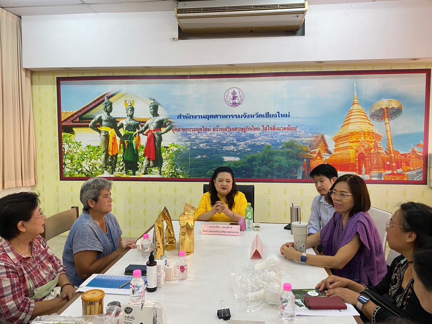วันที่ 16 สิงหาคม 2567 เวลา 09.00 น. นางพัชรี สองสีโย อุตสาหกรรมจังหวัดเชียงใหม่ มอบหมายให้นางสาวธิติมา หอมวุฒิวงศ์ หัวหน้ากลุ่มส่งเสริมและพัฒนาอุตสาหกรรม และ เจ้าหน้าที่ฯ ดำเนินการจัดประชุมเตรียมความพร้อมในการประชุมคณะกรรมการรับรองมาตรฐานผลิตภัณฑ์ชุมชนจังหวัดเชียงใหม่ ครั้งที่ ชม 66-3/2567 ณ ห้องประชุมเชียงใหม่ ชั้น 2 สำนักงานอุตสาหกรรมจังหวัดเชียงใหม่ โดยมี นางอุบล ธาราวรรณ ตำแหน่งนักวิชาการสาธารณสุขชำนาญการและนายนพพล สมปัน ตำแหน่งนักวิชาการสาธารณสุขชำนาญการ จากสำนักงานสาธารณสุขจังหวัดเชียงใหม่ ร่วมประชุมเพื่อให้คำปรึกษาและแนะนำการแสดงฉลากบนผลิตภัณฑ์ แก่ผู้ประกอบการผลิตภัณฑ์ประเภทอาหาร ประเภทเครื่องดื่มและประเภทสมุนไพรที่ไม่ใช่อาหาร