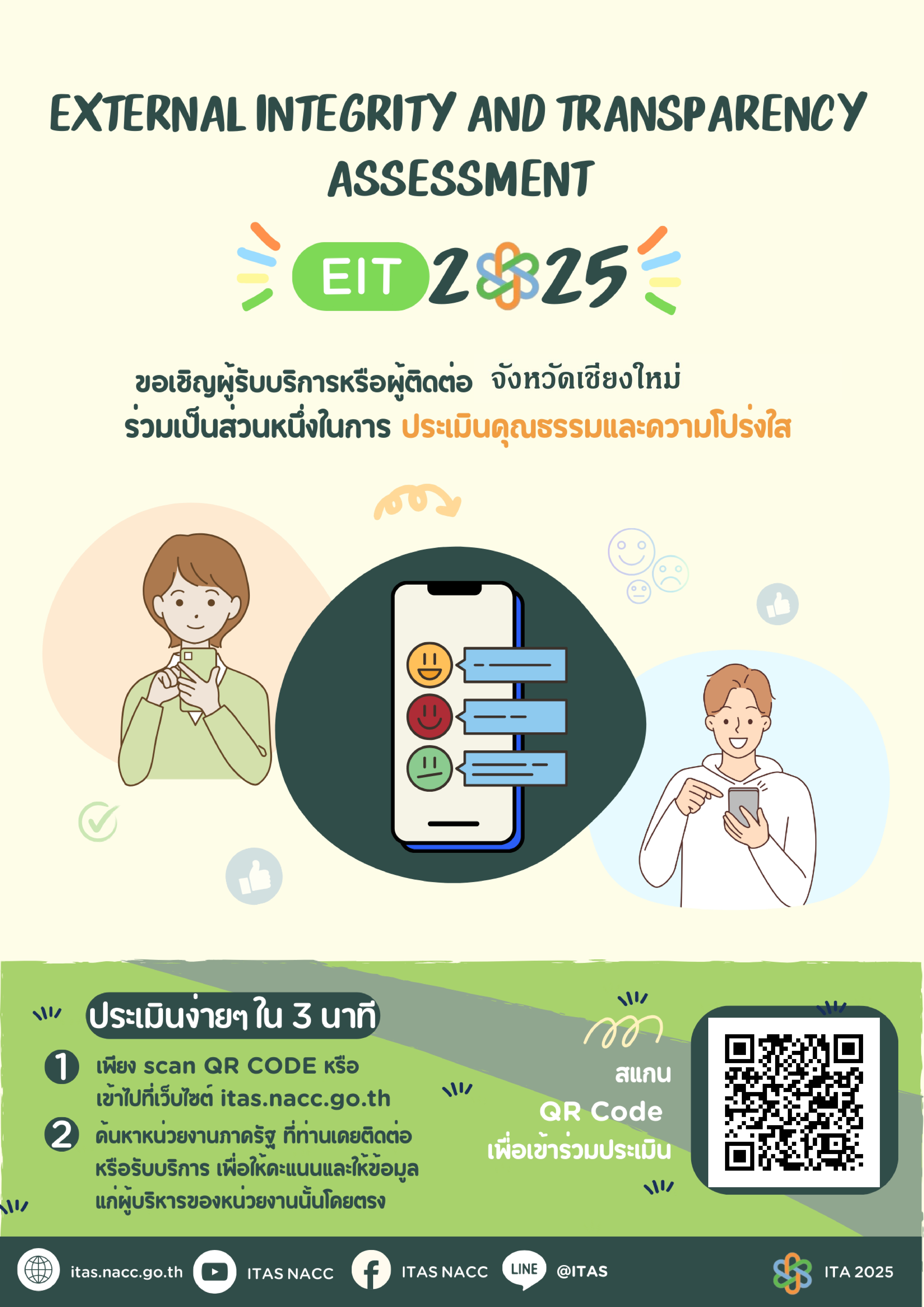 ขอความร่วมมือผู้ประกอบการ/ประชาชน ตอบแบบประเมินผู้มีส่วนได้ส่วนเสียภายนอก (EIT) ประจำปีงบประมาณ พ.ศ.2568 ของจังหวัดเชียงใหม่