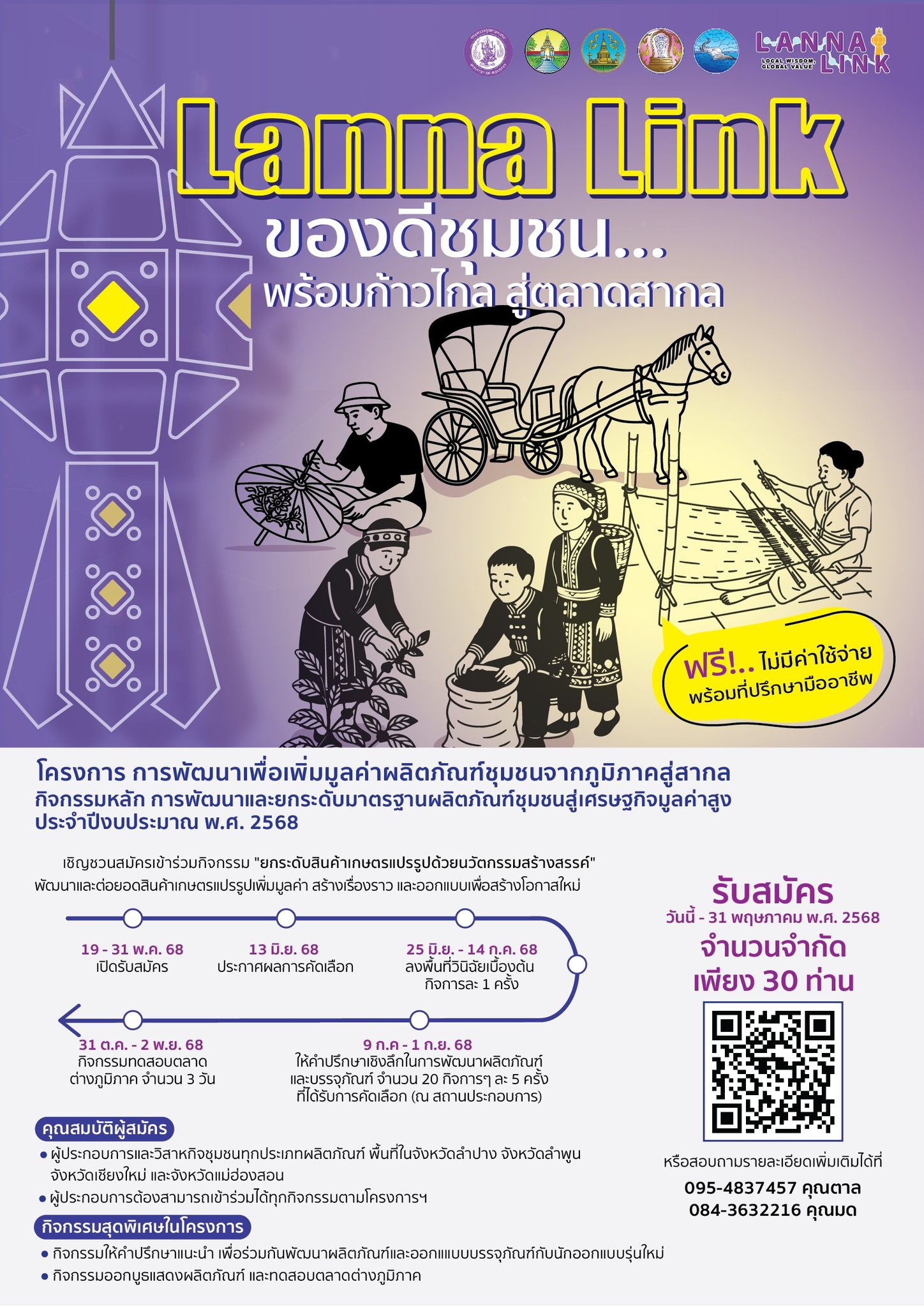 ขอประชาสัมพันธ์ โครงการการพัฒนาเพื่อเพิ่มมูลค่าผลิตภัณฑ์ชุมชนจากภูมิภาคสู่สากล